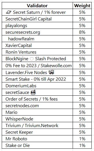 One of the primary differentiators of stkd-SCRT is how the validator set is chosen. The following are the set of 21 validators selected for quarter one, which will be revisited quarterly.