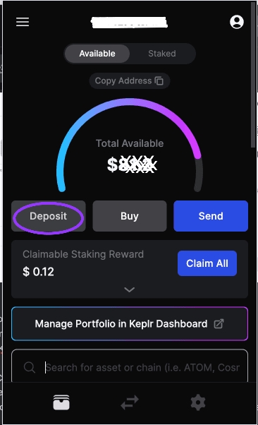 Create a viewing key on ShadeSwap or Portfolio to see your assets