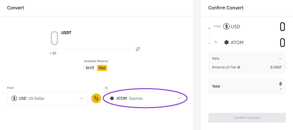 Convert a token to ATOM (i.e., from BTC, to ATOM)